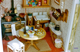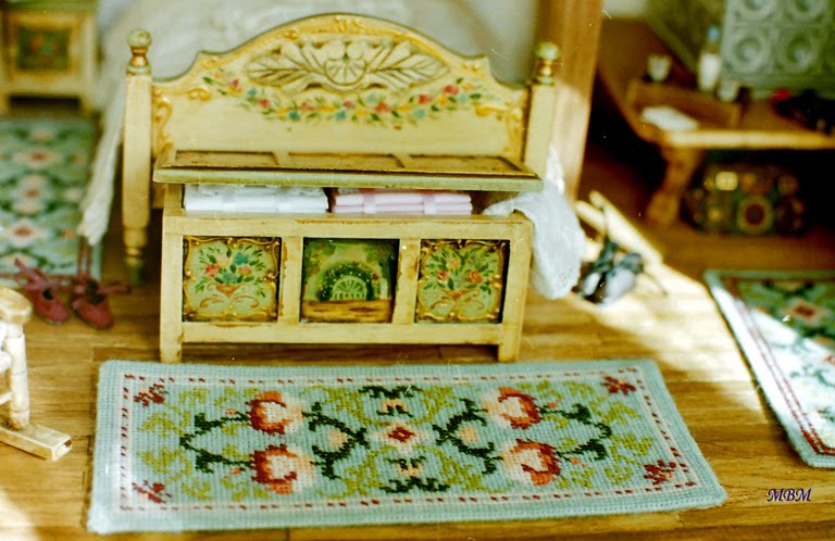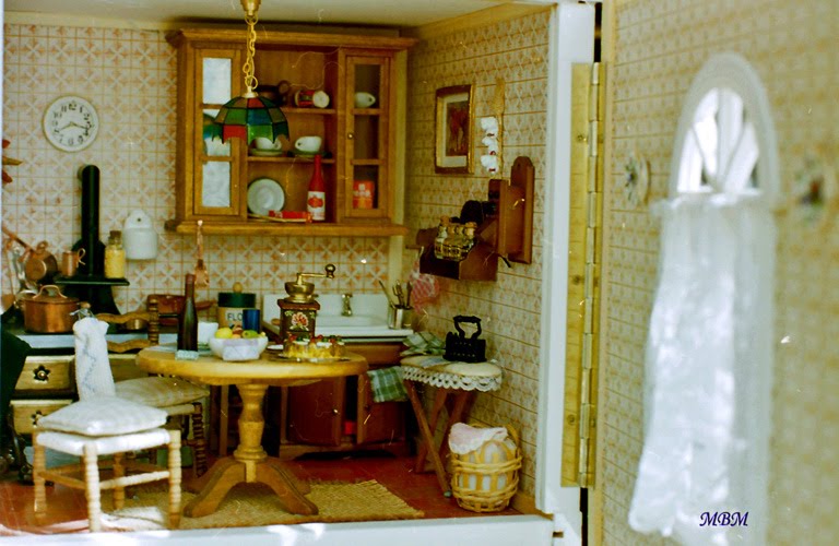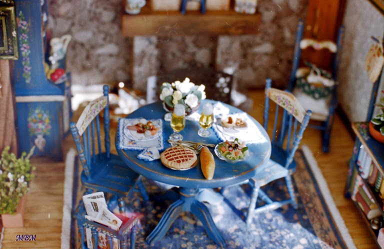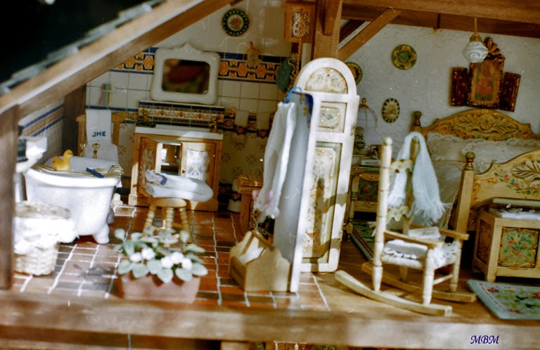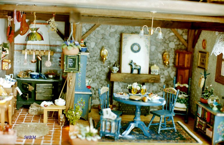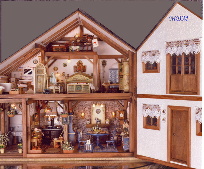 Después de un viaje al Tirol, donde vi el mobiliario pintado que se usa en la zona, la decoración de sus interiores, su curioso sistema de calefacción, y toda la belleza de aquella región, que me encantó...decidí reflejar un poco lo que vi al hacer esta casa.
