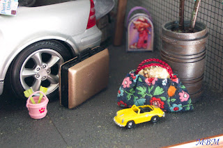 Así que decidí hacerle esta escena con el coche casi preparado para el viaje para que el tiempo se le hiciese mas corto...
