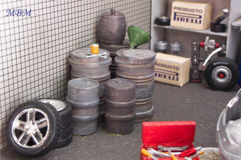 Hay ruedas de repuesto, bidones de aceite y gasolina....