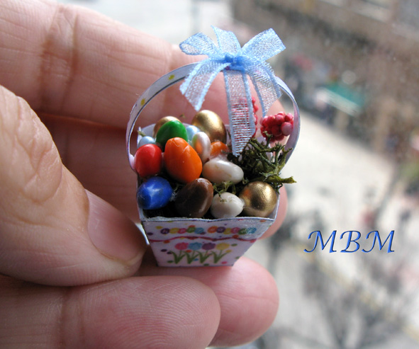 Al fondo, en la pared, unos platos hechos y pintados a mano, en el sofá un diminuto cojín bordado a punto de cruz y un par de tartas que hice en Fimo, esperando que llegue la hora del postre...