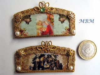 Otro de mis trabajos para regalar en estos días han sido unos pequeños retablos, bien antiguos, para llevar la Navidad a nuestras casitas...