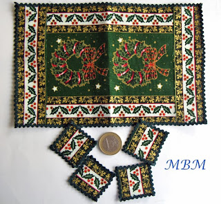 He hecho estos manteles para decorar la mesa de Navidad  con una composición de telas de dibujo navideño y dorado, para que Papá Nöel elija cual prefiere, según el día...