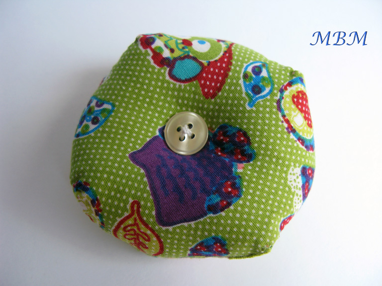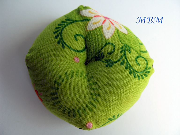 Un precioso alfiletero de un tamaño pensado para mis agujas y alfileres cuando me voy de viaje cargada con mis minialfombras...