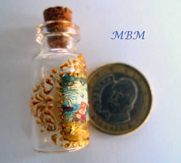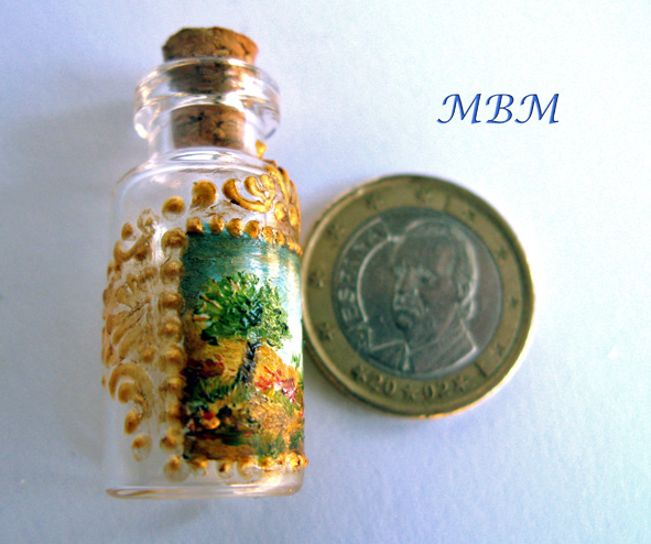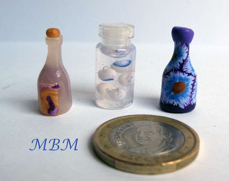 Unas botellas de "vidrio"...Naturalmente, en Sculpey y posteriormente decoradas...