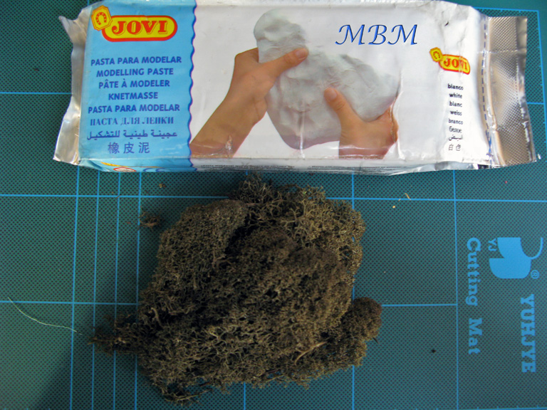 Llenarlo con la pasta Das y colocar encima musgo sintético o espolvorear