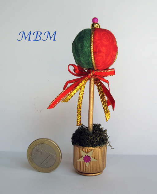 y firme, atar cintas de adorno en el punto de unión de la bola al palito haciendo unos bonitos lazos, y si queréis, algún detalle a la maceta, como en este caso he hecho yo poniendo un par de estrellitas, y ¡listo!...