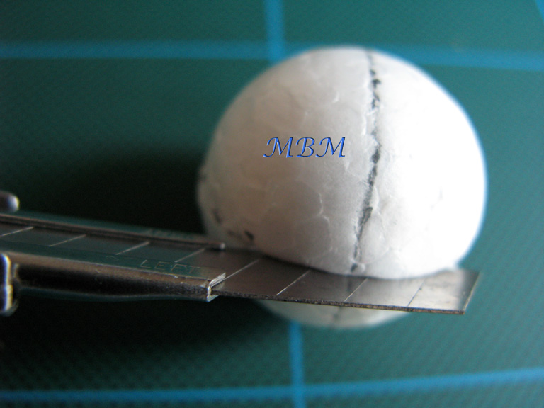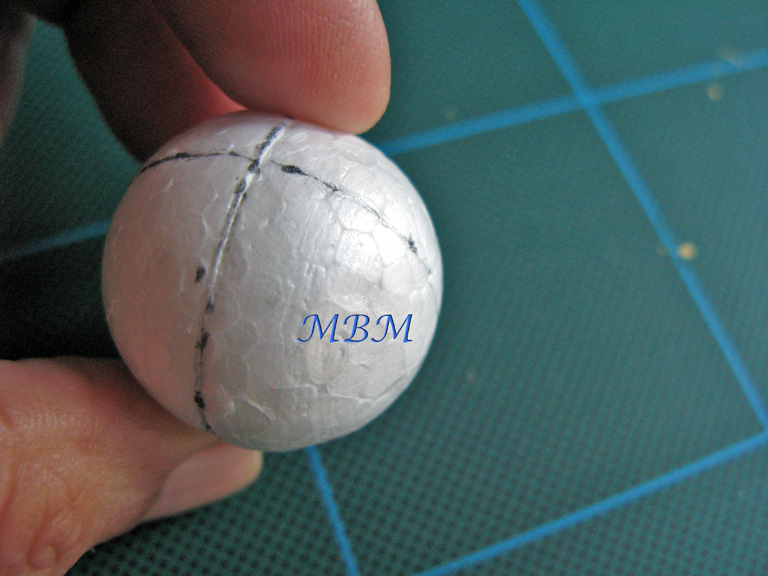 de la bola, hacer 4 cortes con el cúter, bastante hondos, pero sin llegar al fondo.