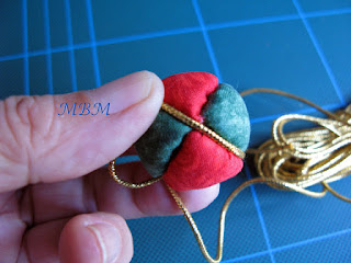 Cuando este todo colocado, pegar trozos de cordón dorado tapando