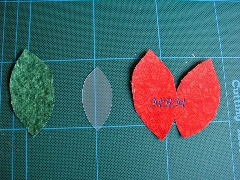 Medir el tamaño de alto de arriba a abajo y entre los cortes en la parte más ancha, y cortar tiras de tela según estas medidas, dándoles forma de gajo de naranja () dejando siempre unos 2 o 3mm de exceso todo alrededor.