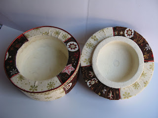 Puesta a hacer cajas, pensé aprovechar unos tozos de telas navideñas que me quedaban y de paso, adelantar el trabajo que luego, cercana la Navidad, es todo mas apurado...