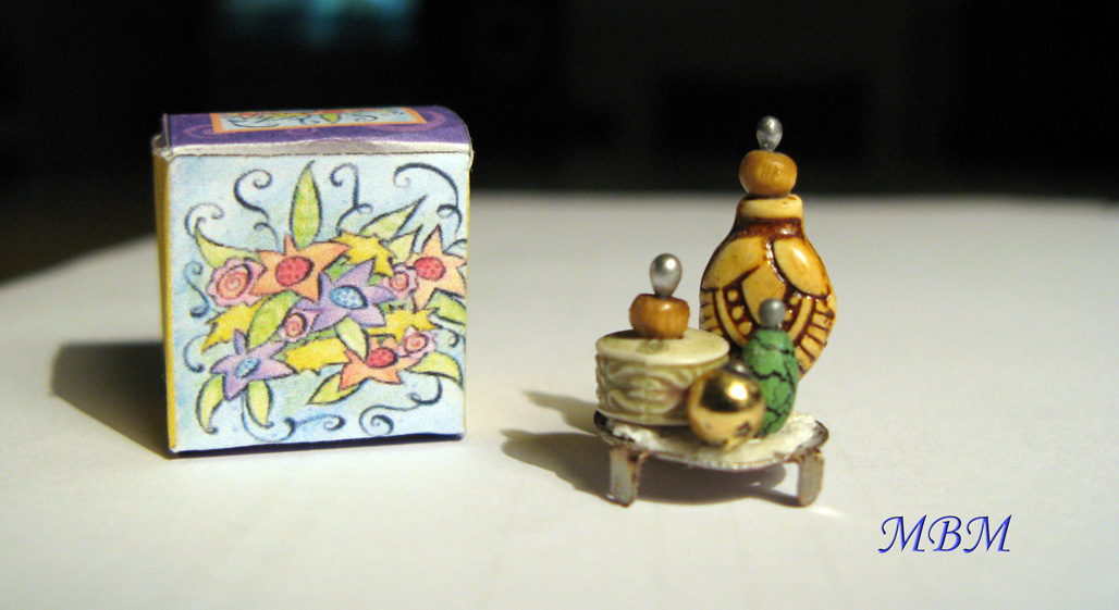 Mas un saltador de los de toda la vida hecho con cuentas, palillos y un poco de hilo, un muñeco de fimo de un coleccionable y una mini casa de resina, que pinté en tonos rosas, para el disfrute de las mas pequeñas...