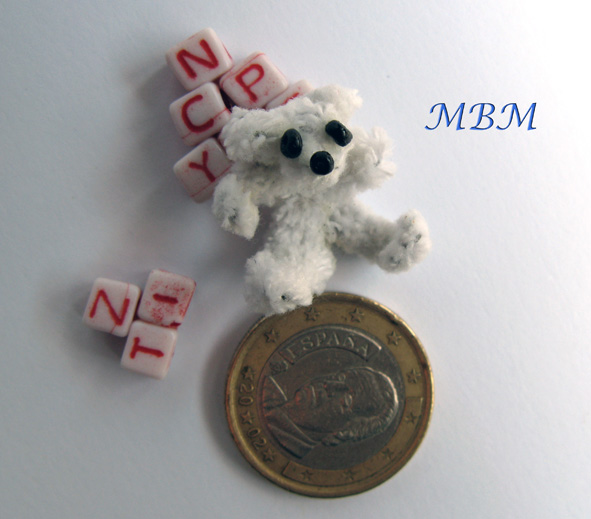 Un osito de limpiapipas, (que me salió feísimo, por cierto) y unos bloque de letras hechos con cuentas...